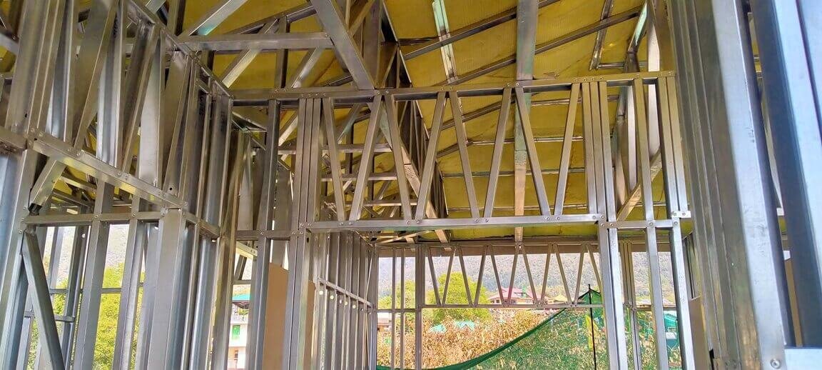 Light Gauge Steel Framing (LGSF) Technology is an innovative construction method that utilizes thin, lightweight steel sections to create a structural framework for buildings. Unlike traditional wood or concrete framing, LGSF relies on cold-formed steel, which is manufactured by bending steel sheets into specific shapes. This technology offers numerous advantages, including a high strength-to-weight ratio, durability, and resistance to fire, pests, and rot. LGSF structures are known for their precision and speed of construction, as the components are often prefabricated off-site and can be easily assembled on-site. The versatility of LGSF allows for diverse architectural designs, and its use has become increasingly popular in residential, commercial, and industrial construction projects. This modern construction technique not only enhances the efficiency of the building process but also contributes to sustainable practices by reducing material waste and promoting recyclability in the construction industry. This is one of the prefabricated building technologies that has a very high potential for low-rise buildings up to G+3 buildings. Especially in difficult terrain including hilly areas like Himachal Pradesh, Jammu and Kashmir, Ladakh, Uttarakhand, and PAN India. where transportation of the material and availability of skilled workers is a tedious process.